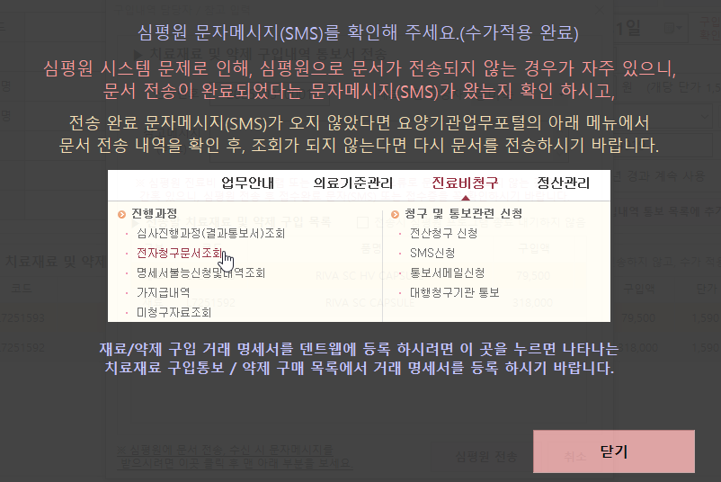 그래서 저는 심평원 HIRA에 들어가서도 실제로 심평원으로 전송이 되었는지 확인을 더 합니다.