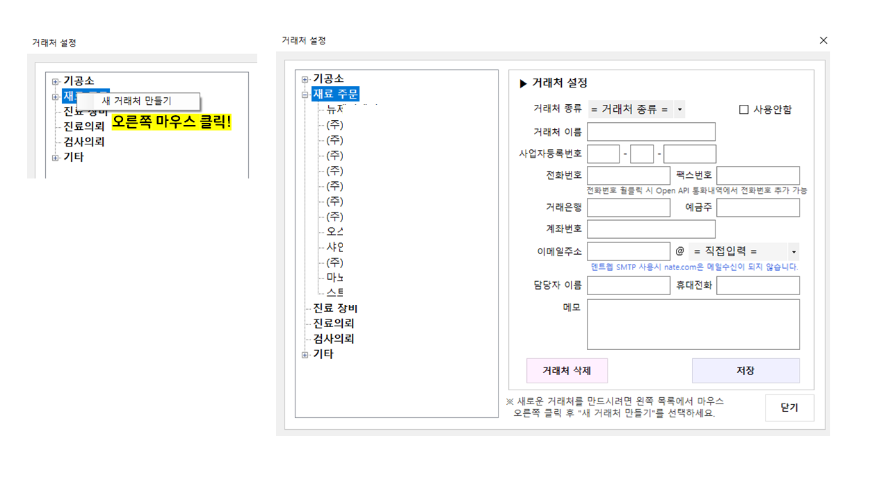 아래 사진속 설정 버튼을 누르면 거래처 설정 창이 나오는데요