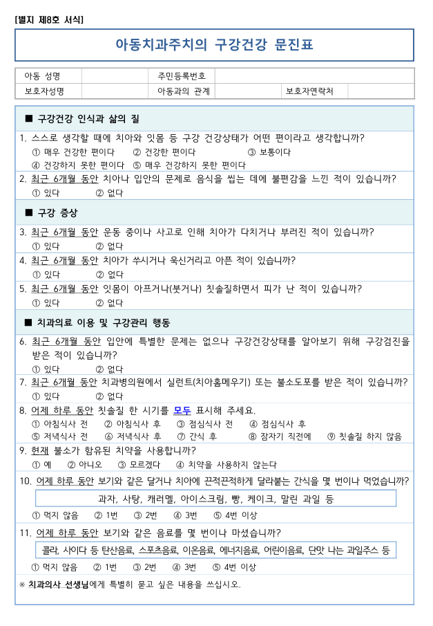 아동치과주치의 서비스이용종합 -> 문진표 작성