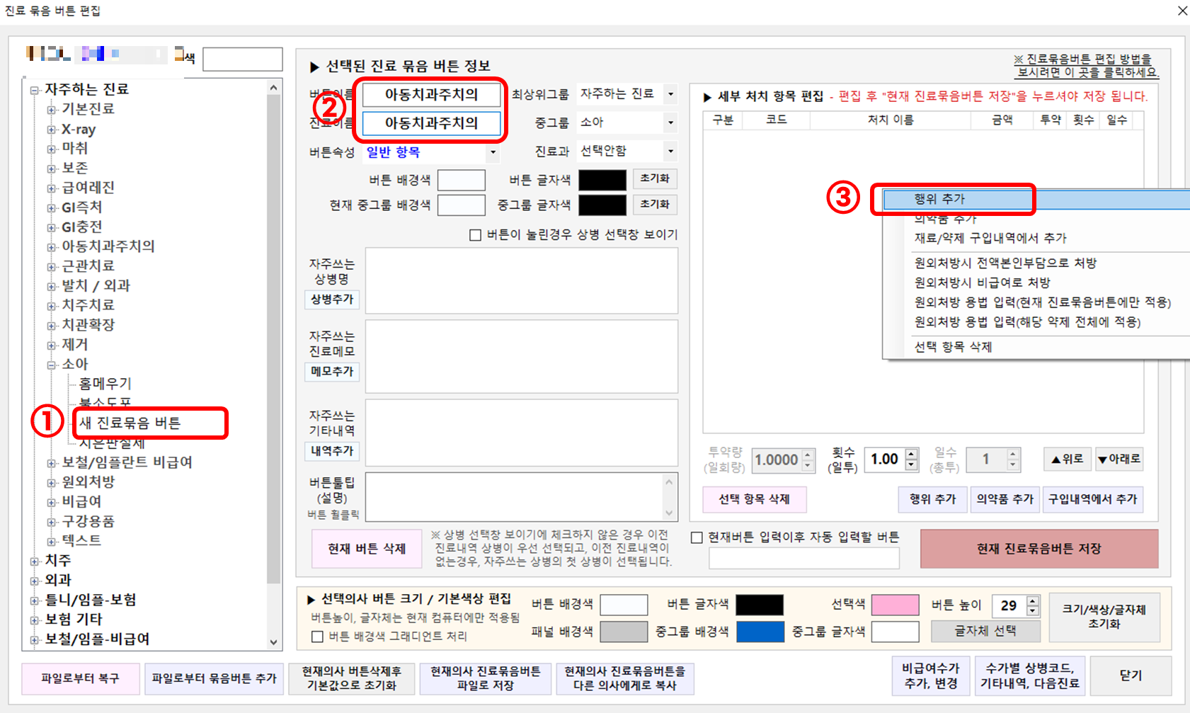 아무 보험청구 버튼에 우클릭을 해주시면 바로 새처치버튼을 만들수있는 창이 나타납니다.