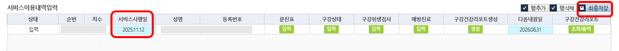 (국민건강보험공단에 등록된 서비스일자와 명세서 요양개시일이 상이한 경우) 관련 불능 처리
